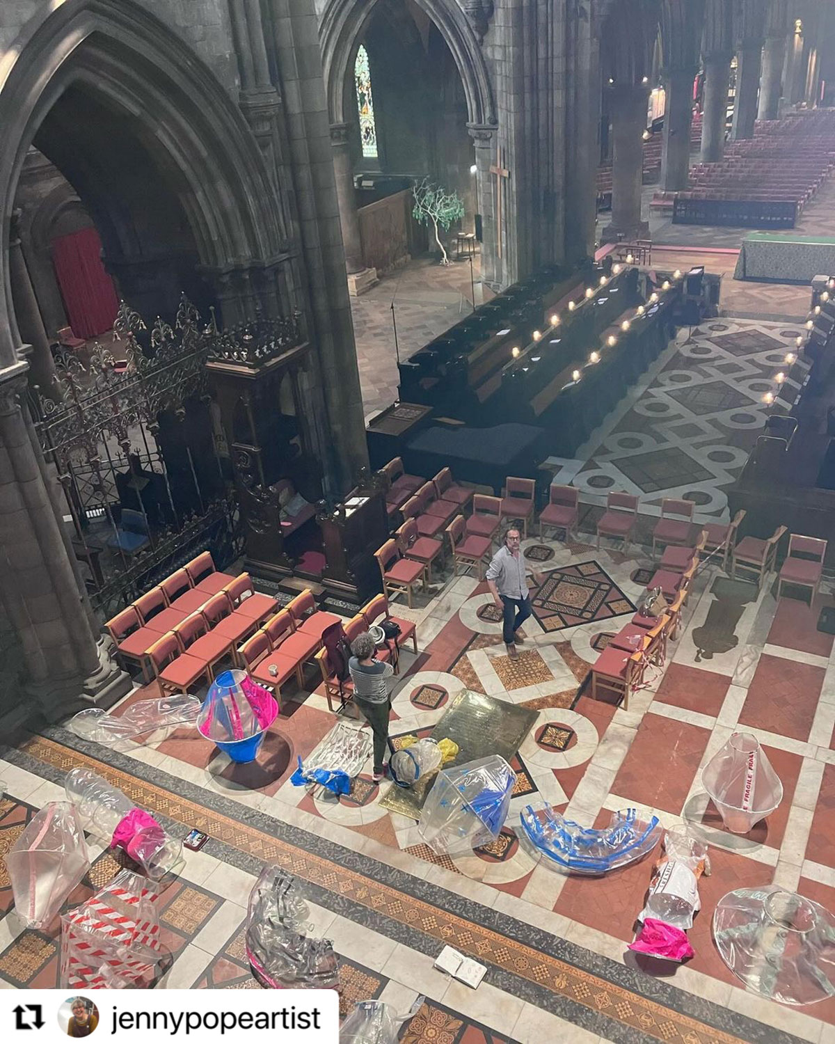 By siting this work at the Cathedral’s high altar, I was asking the visitors and the congregation to examine the wounds of environmental exploitation and extraction and to consider the part we may play in this. By contrasting deep time with the immeasurably short time that we now have ahead to act responsibly, I was posing questions about our resilience to act and our communal moral distress as we witness changes unfolding –