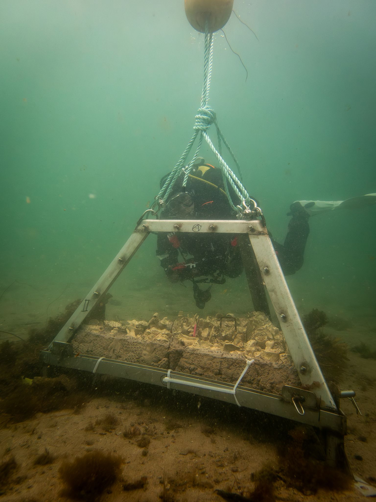 The mooring part of the sculpture with the intentional habitat will now overwinter under the sea just outside the museum.Karen Boswarva of Seasearch Orkney & Shetland will be organising a series of monthly monitoring events and divers and snorkellers can contact Karen to get involved. She will be using the citizen science Seasearch protocol to gather data about colonisation of mooring with an added focus on a few iconic ceramic forms over the months. She will also be collecting water samples to look at plankton that is in the harbour.